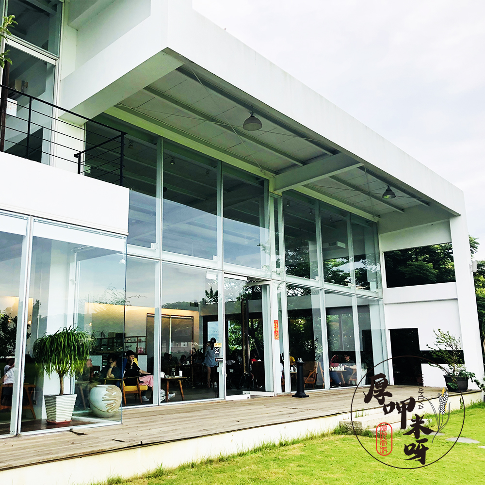 沒多久便到達了店家的停車場,停車場的位置不多,運氣好的可以在此停放,也有很多人直接停在巷外的產業道路兩側,停車非常方便,進店後真有覺得世外桃源的感覺,大片的農田景觀、挑高玻璃屋、戶外露天木屋也是座位區、綠意小花園等等。